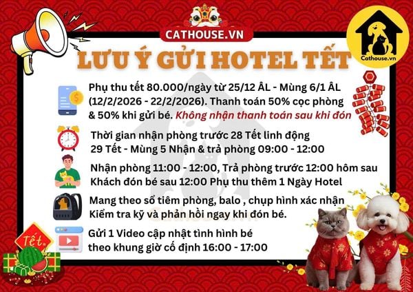 Tết luôn là dịp mà mọi người gác lại những bộn bề của cuộc sống dành thời gian về quê để sum họp gia đình. Trong thời gian này, nhiều chủ thú cưng gặp khó khăn trong việc chăm sóc và đảm bảo an toàn cho chúng. Thấu hiểu được nỗi lo của các “sen”, Cathouse cung cấp dịch vụ chăm sóc và chế độ chăm sóc chuẩn 5 sao dành cho các “Hoàng thượng”. Trong quá trình lưu trú, thú cưng sẽ được nuôi dưỡng với khẩu phần ăn uống và sinh hoạt hợp lý, lành mạnh để luôn đảm bảo được sự cân bằng, cung cấp đầy đủ dinh dưỡng cho các bé.
