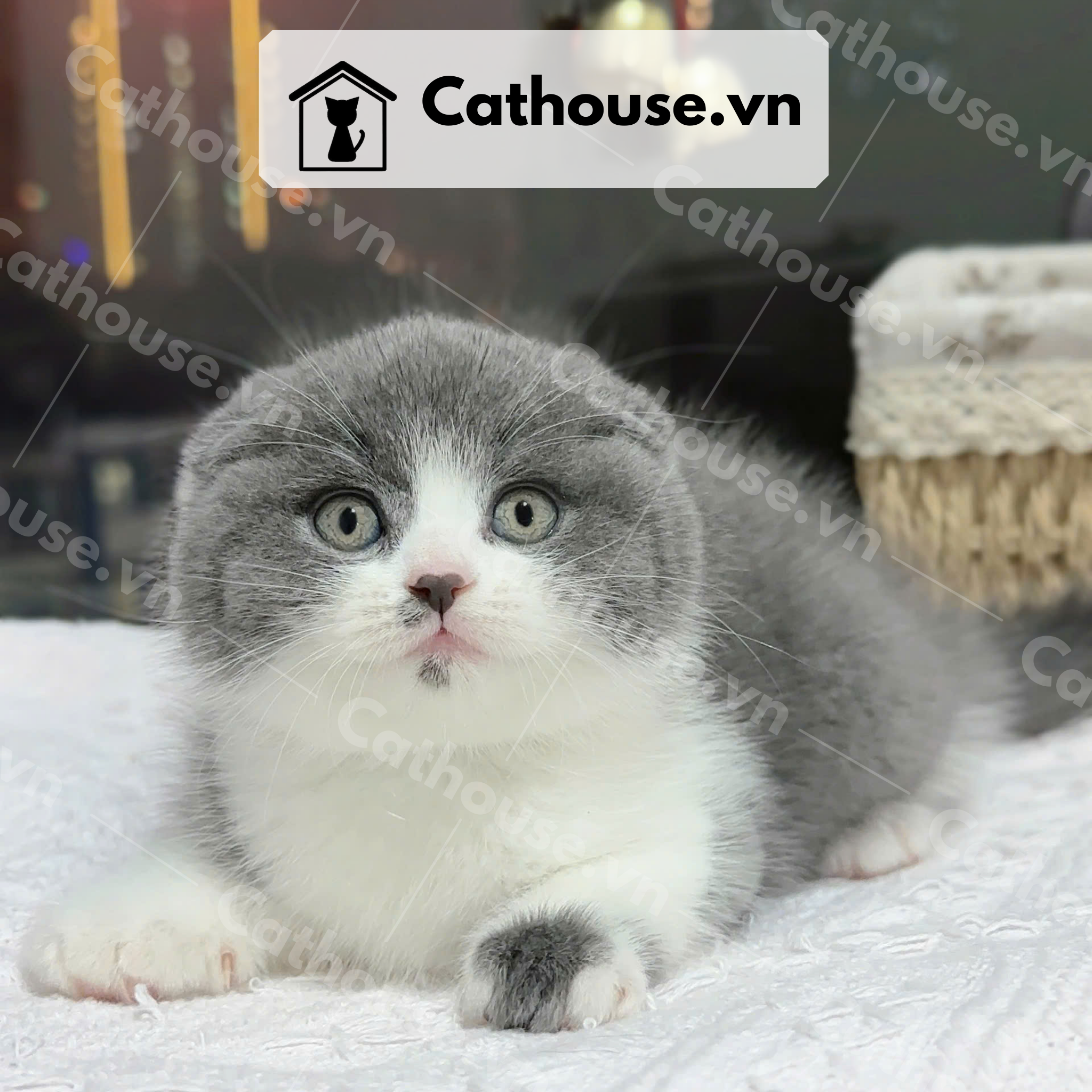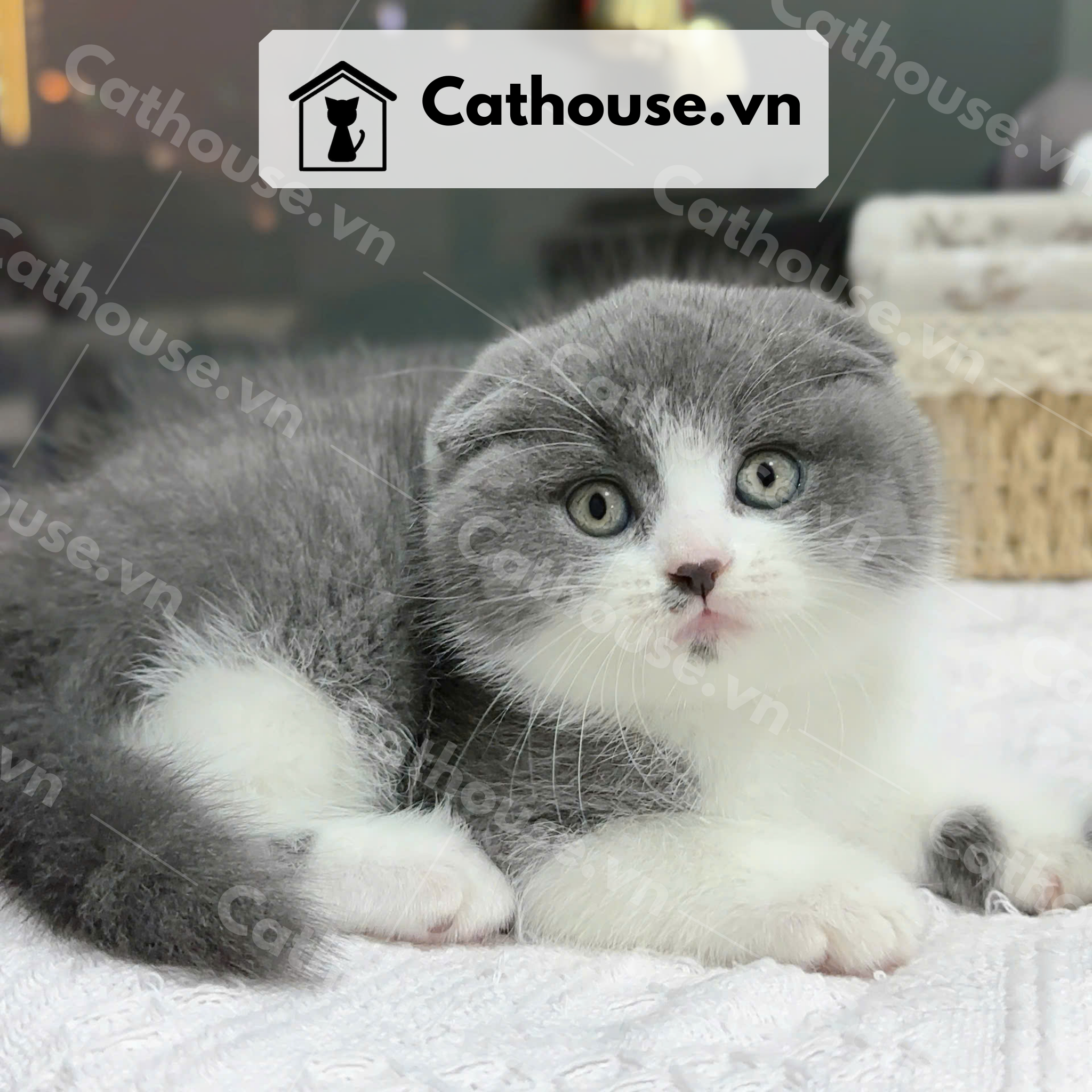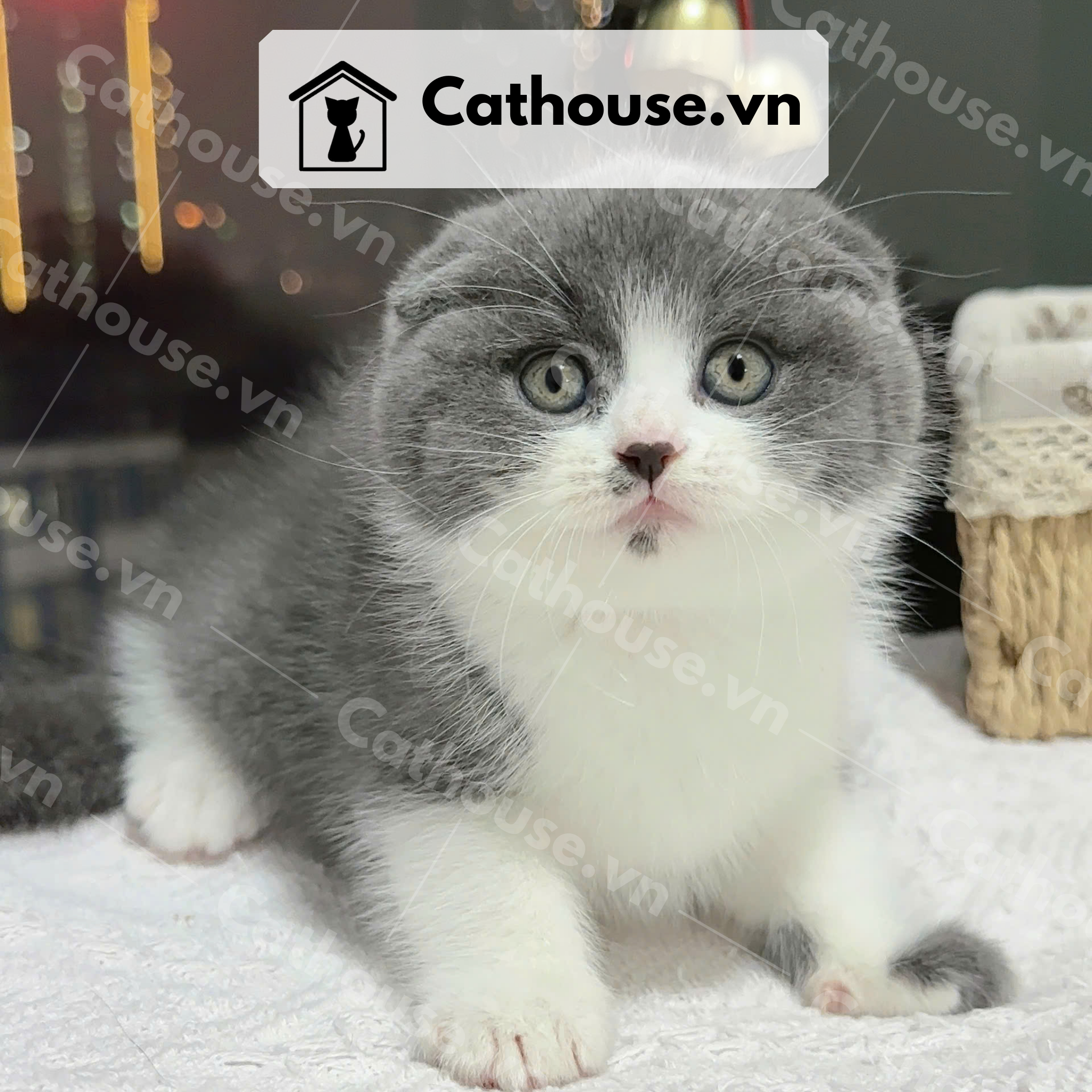 Mèo Anh Lông Ngắn Màu Bicolor Xám Xanh tai cụp - ALN02030